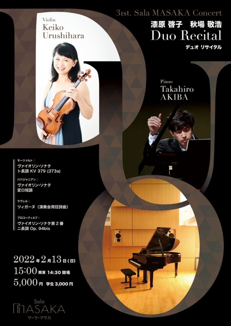 【2022/02/13】漆原啓子&秋場敬浩 デュオ・リサイタル(横浜市) 2022年2月13日(日)15:00開演@Sala MASAKA(東戸塚) モーツァルト、プロコフィエフ、ババジャニアンのソナタ、ラヴェル「ツィガーヌ」 詳細:https://www.japanarts.co.jp/concert/p938/ (ジャパン・アーツ公式サイト内) [ 【2022/02/13】漆原啓子&秋場敬浩 デュオ・リサイタ... ]Archive 20222021/07/26 16:57