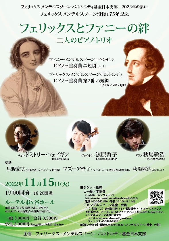 【2022/11/15】フェリックスとファニーの絆~2人のピアノトリオ(メンデルスゾーン基金日本支部2022年の集い)(東京都) 2022年11月15日(火)19:00開演@ルーテル市ヶ谷ホール ファニー・メンデルスゾーン=ヘンゼル:ピアノ三重奏曲 二短調 Op. 11 フェリックス・メンデルスゾーン・バルトルディ:ピアノ三重奏曲第2番 ハ短調 Op. 66 お問合せ:https://mendelssohn-archive.jimdofree.com/(メンデルスゾーン基金日本支部公式サイト) [ 【2022/11/15】フェリックスとファニーの絆~2人のピ... ]Archive 20222022/06/14 23:48